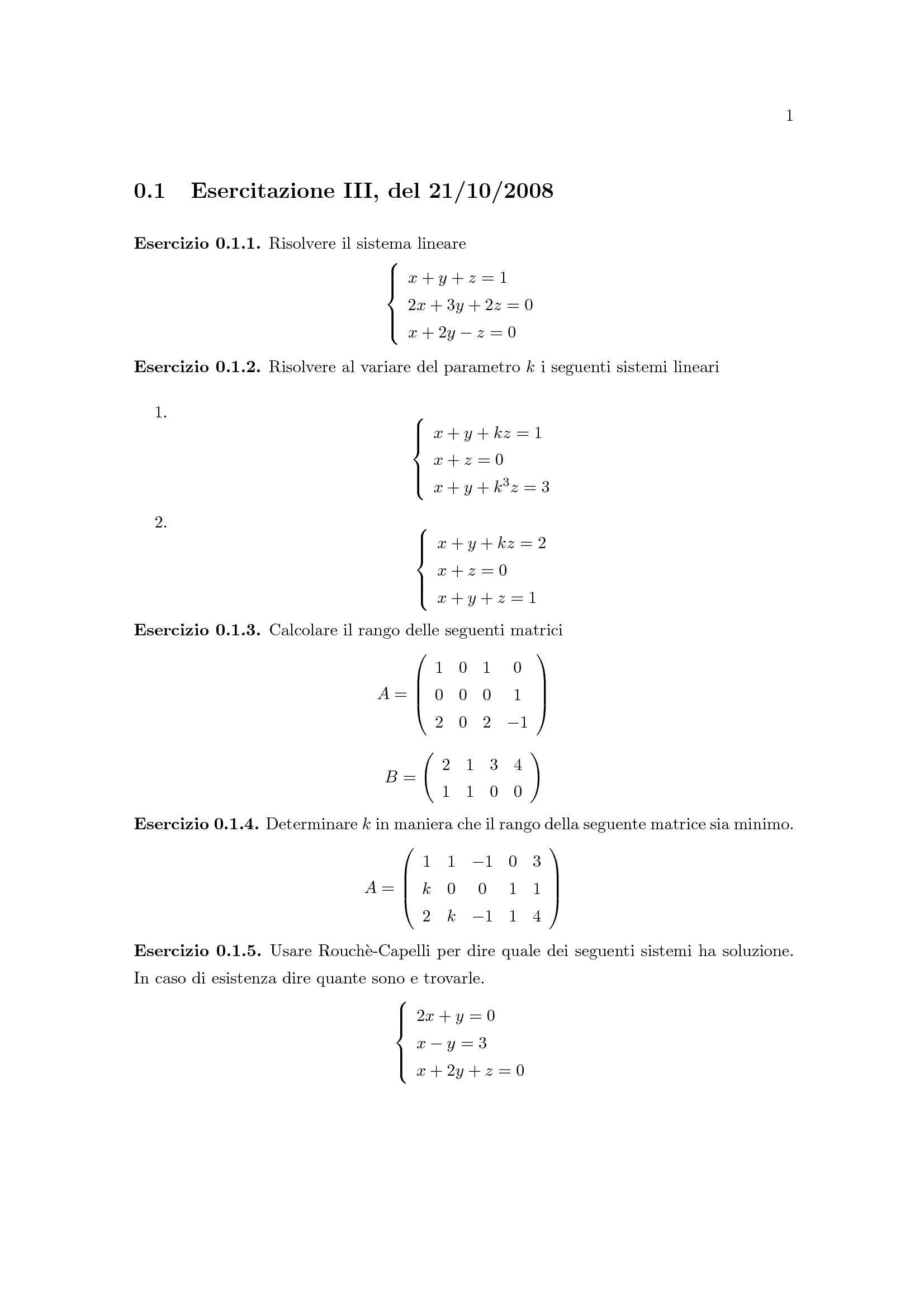 Il teorema di rouché capelli fornisce quindi una scaletta molto precisa per studiare la compatibilità di un qualsiasi sistema lineare, basata sullo studio del . 8 criterio del rango, 21. 7 dipendenza e indipendenza lineare di vettori di rn, 19. Il sistema lineare ha soluzioni se e soltanto se . 1 matrici associate a un sistema. 6 sistemi lineari omogenei, 16. A ogni sistema di m equazioni in n incognite sono associate varie matrici:. · riscrittura del sistema formato solo dalle r equazioni .